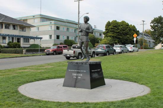 Terry beacon-hill-parkTerry Fox (1958-1981) Terry Fox never made it to Mile Zero in Victoria, as his Marathon of Hope (1980) was cut short just outside of Thunder Bay by a recurrence of the cancer that had already taken his right leg. However, in 2005, the City of Victoria and private donors erected this statue, over the objections of some daft citizens who thought it did not belong in Beacon Hill Park. Fox had hoped to raise $24 million dollars for cancer research – one dollar for every Canadian. A telethon after he stopped his journey accomplished this goal, and he died in 1981. Since then the Terry Fox Run has raised over $650 million. But the thing that gets me is – the guy ran a marathon EVERY FRIGGIN DAY! Some people make running a marathon a life goal, and I haven’t even done that – the best I can do is run a slow 10k. But he ran a marathon, every day, until illness struck him down. To me he’ll always be Canada’s greatest athlete.