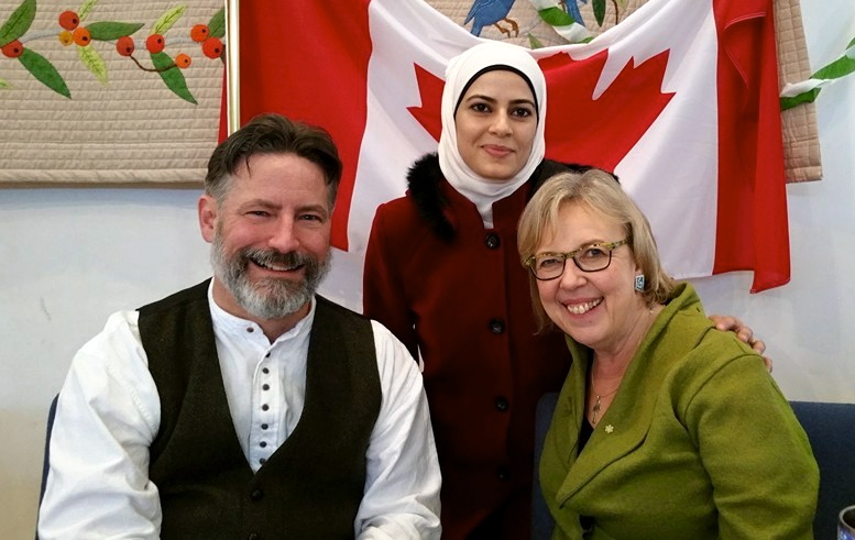 Lama, who arrived from Syria in February 2015, between two Anglicans. On the right is Elizabeth May, MP for Saanich and the Gulf Islands, whose efforts to assist Lama and her family were great!