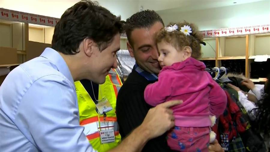 Prime Minister Justin Trudeau welcomes some of the first refugees from Syria being airlifted and expedited by the Canadian government.