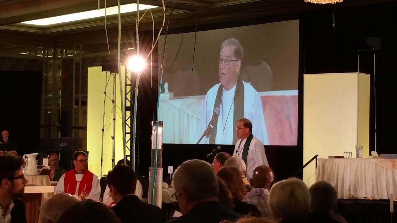 As mentioned, both General Synods have gone paper-less, using websites and special apps to provide members and interested folk with the masses of documents that used to fill a binder. Both also live-stream the proceedings, and use large screens in the assemblies themselves to project the person speaking.