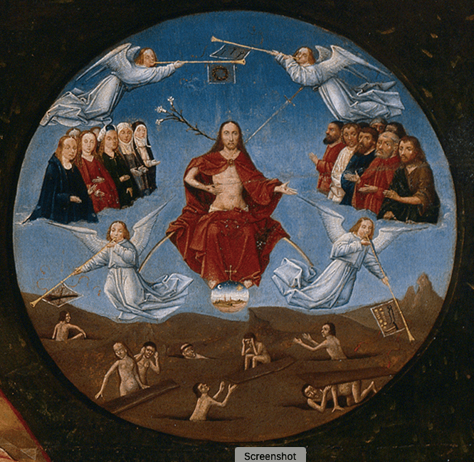 In some ways the picture above would go better with yesterday’s poem, but Judgement follows on from Dooms-day, and in some respects are the same. The idea goes back at least as far as the middle of the second century BCE, when the Book of Daniel was written. The anonymous author writes: