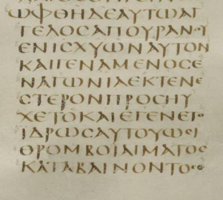 Transcription: 43 ὤφθη δὲ αὐτῷ ἄγγελος ἀπ’ οὐρανοῦ ἐνισχύων αὐτόν. 44 καὶ γενόμενος ἐν ἀγωνίᾳ ἐκτενέστερον προσηύχετο · καὶ ἐγένετο ⸅ ὁ ἱδρὼς αὐτοῦ ὡσεὶ θρόμβοι αἵματος καταβαίνοντες